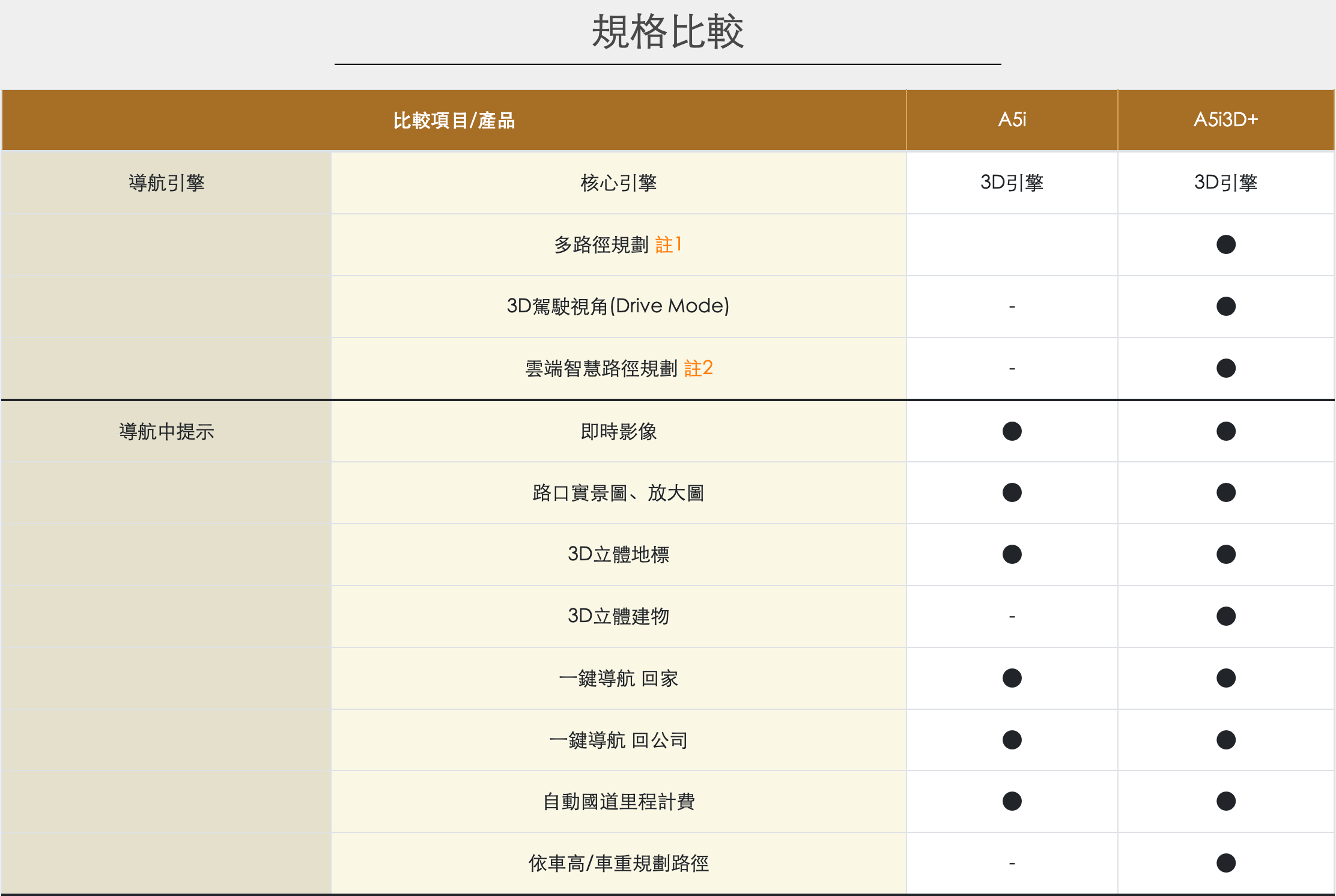 A5i(基礎版):基本導航、單一路線、傳統功能。
